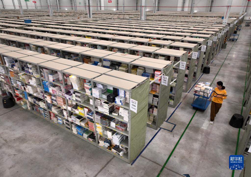 11月10日,在位于四川省眉山市青龙工业物流园的当当网信息技术(眉山)有限公司配送中心,工作人员在备货(无人机照片)。