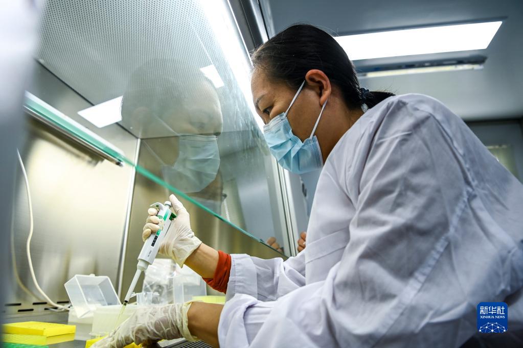 11月10日,在兴业县农业农村局实验室,科技特派员对采集的农作物样本进行化验分析。