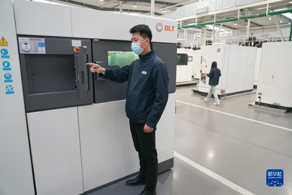 11月8日,工人在位于西安高新区的铂力特金属增材制造智能工厂项目车间内操作3D打印设备。