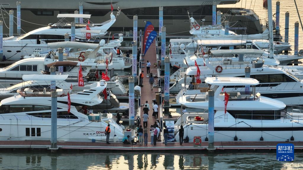 11月10日,与会者在第十二届中国(澳门)国际游艇展进出口博览会上参观(无人机照片)。