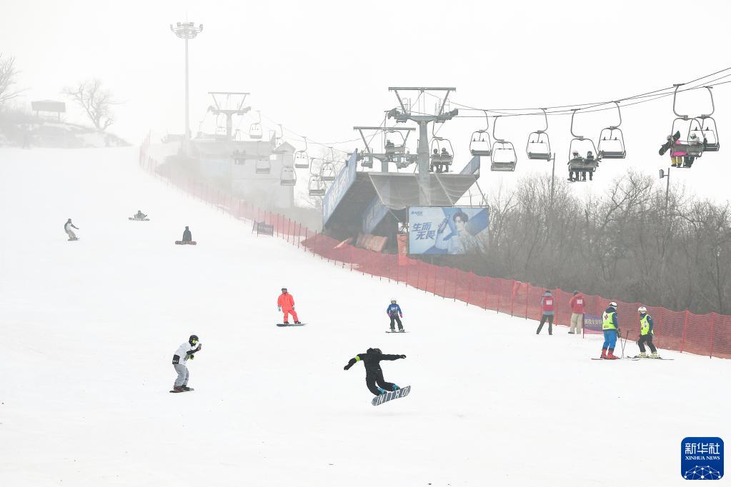 11月11日,滑雪爱好者在庙香山滑雪场滑雪。