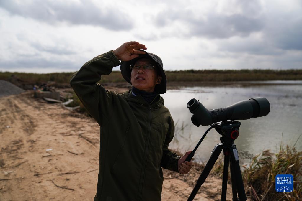 保护区科研人员赵永强在开展鸟类多样性调查和监测(11月8日摄)。