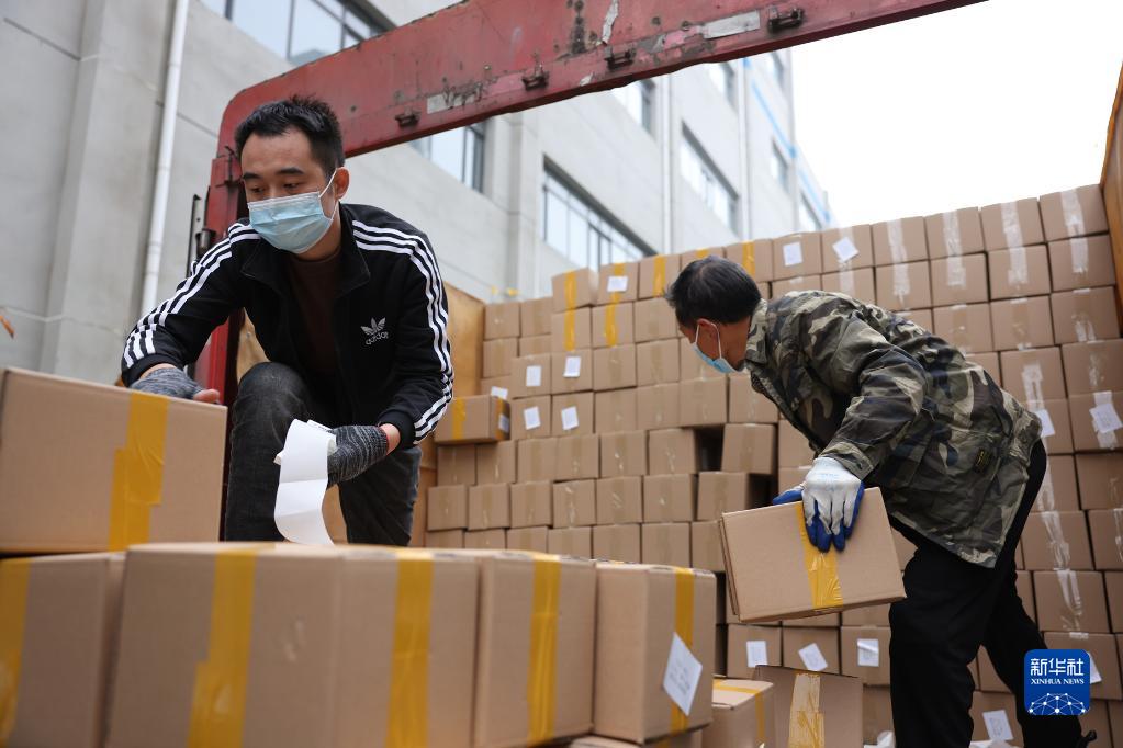 11月11日,在邢台市南和区贾宋镇一家宠物食品企业,工作人员在贴标发货。