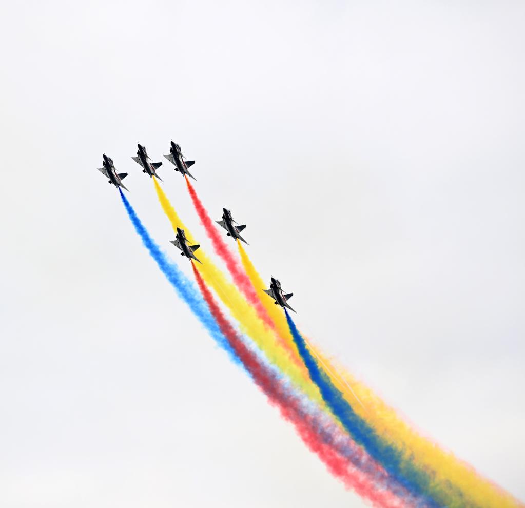 11月11日,中国空军八一飞行表演队在第十四届中国航展上进行飞行表演。