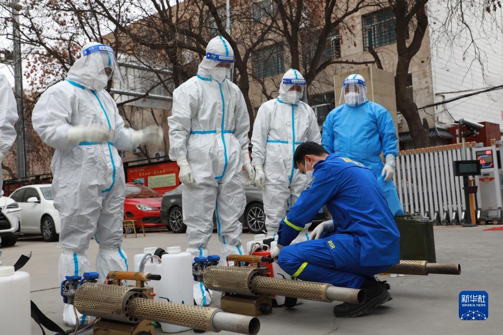 11月11日,在兰州市城关区广武门街道南城根社区,於若飞为队员检查消杀工具。