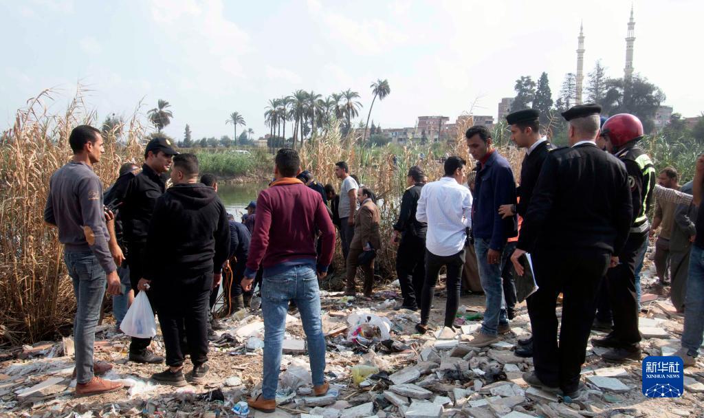 11月12日,人们聚集在埃及达卡利亚省的小巴坠河事故现场。