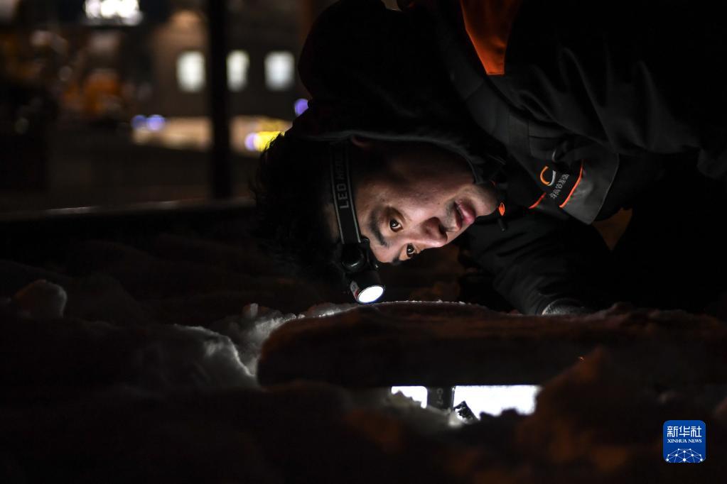 11月12日,吉林省长春市迎来降雪。13日凌晨,在长春火车站内,多个单位、工种相互配合,利用深夜列车停运的“天窗期”开展除冰除雪作业,确保列车行驶安全。