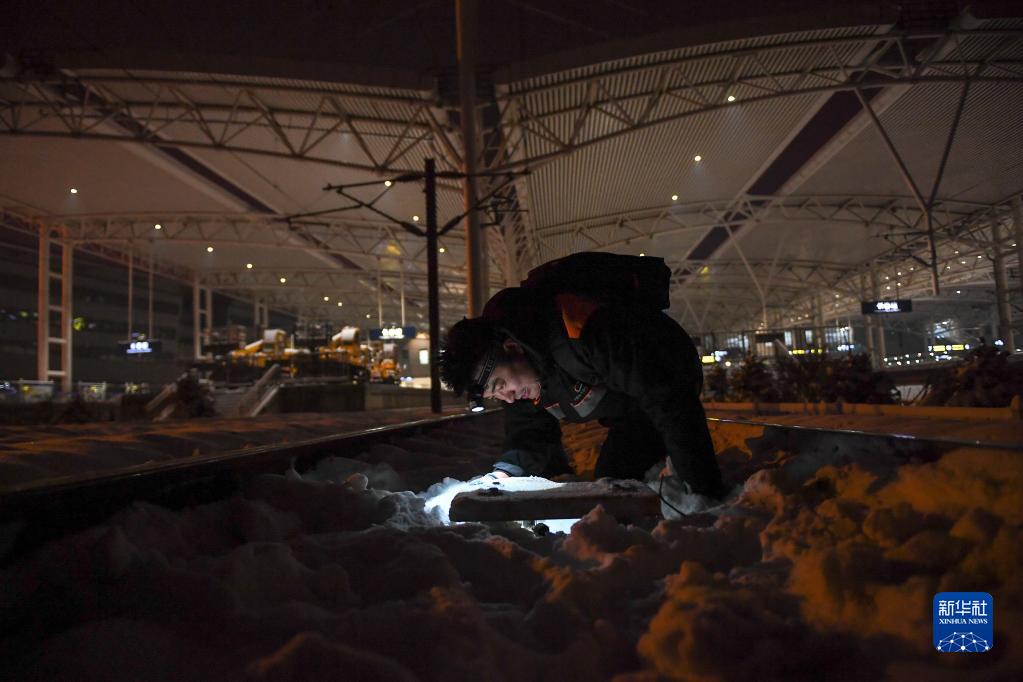 11月12日,吉林省长春市迎来降雪。13日凌晨,在长春火车站内,多个单位、工种相互配合,利用深夜列车停运的“天窗期”开展除冰除雪作业,确保列车行驶安全。