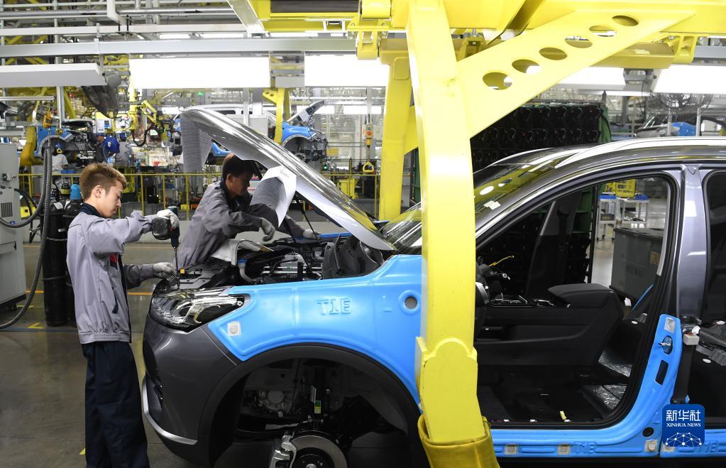 11月12日,工人在安庆一家汽车企业生产线上工作。