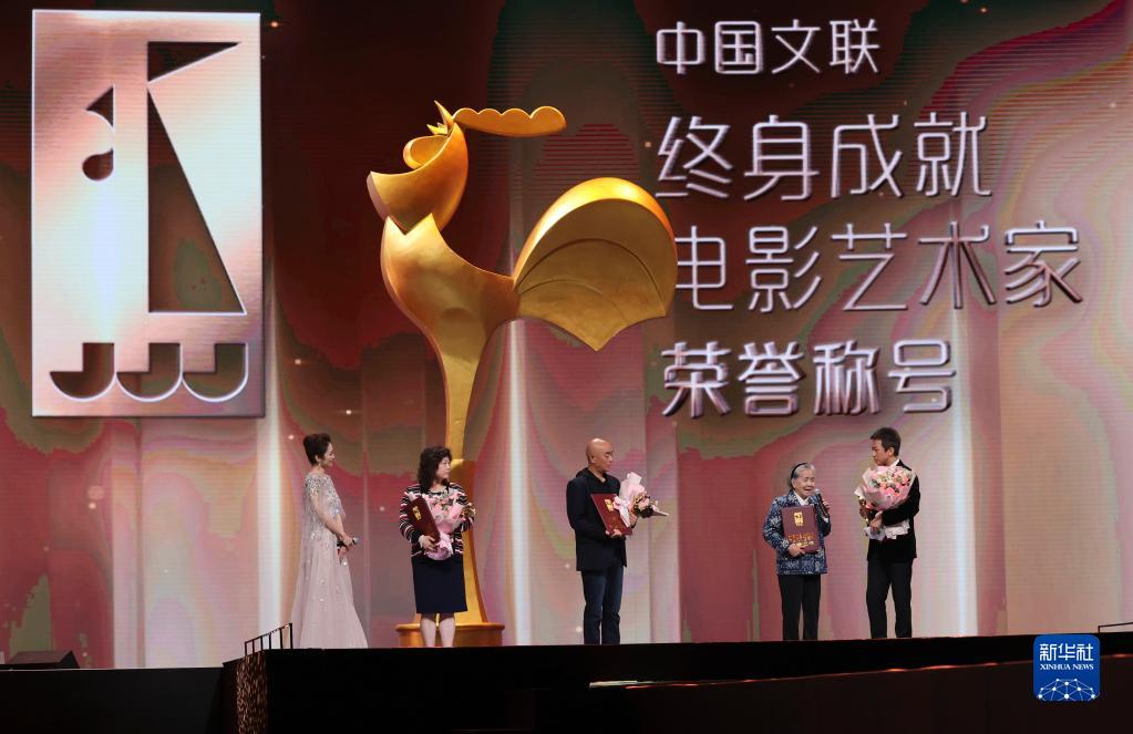 11月12日,王玉梅、黄蜀芹、王好为获中国文联终身成就电影艺术家荣誉称号。这是王好为(右二)在颁奖仪式上发表获奖感言。
