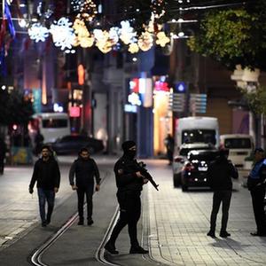 11月13日,警察在土耳其伊斯坦布尔市中心塔克西姆广场警戒。