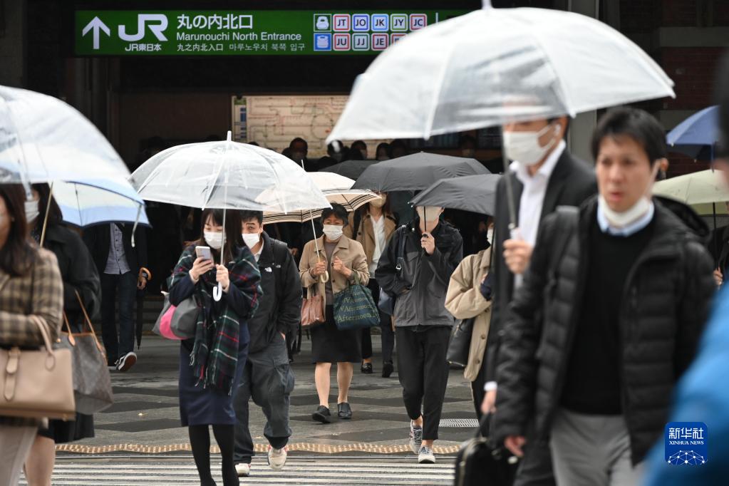 这是11月15日,行人走在日本东京站丸之内出口附近的马路上。