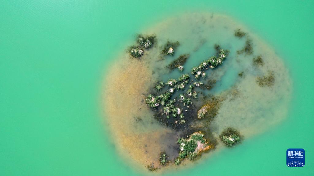 宁夏银川市犀牛湖,候鸟在此安家(2021年6月8日摄,无人机照片)。
