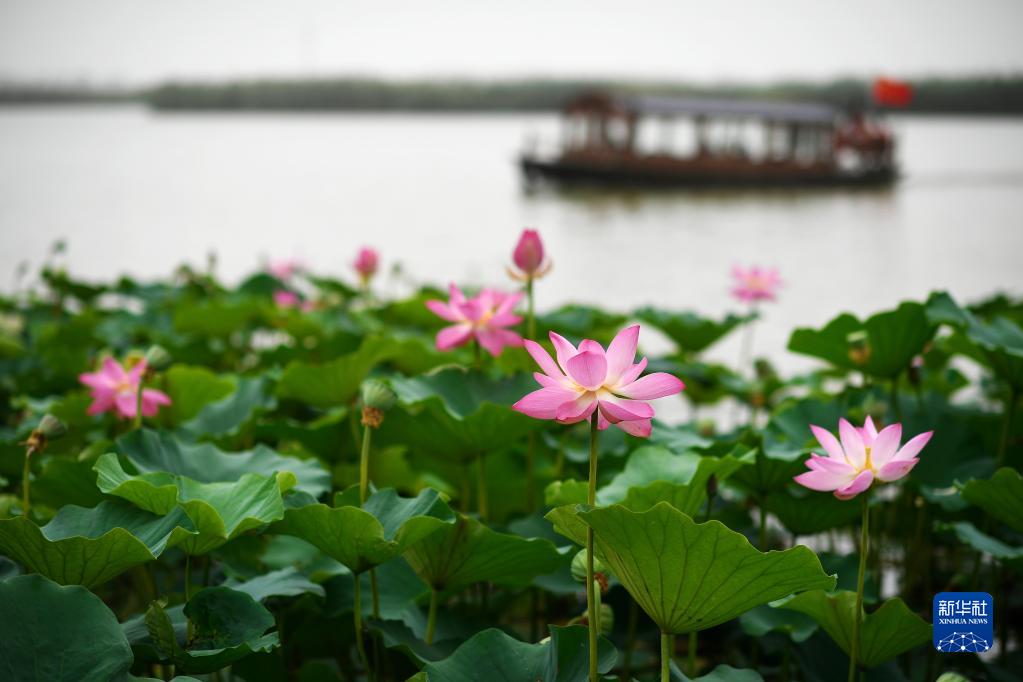 宁夏银川市鸣翠湖国家湿地公园(2018年7月15日摄)。