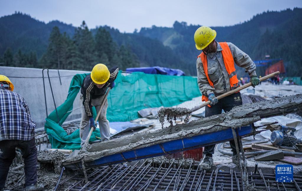 工人在雷榕高速平永互通进行施工(11月15日摄)。