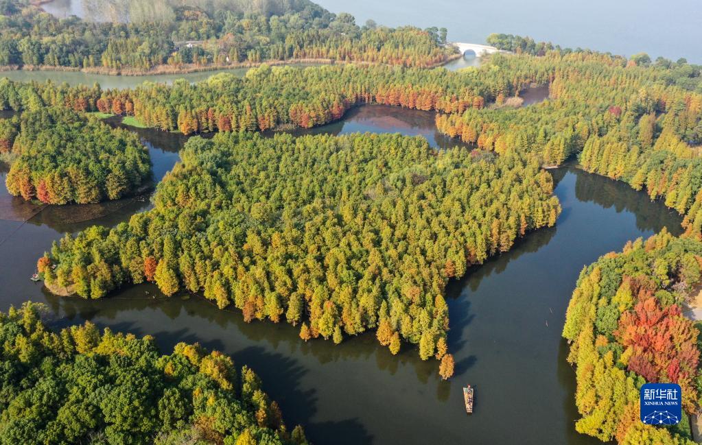 尚湖国家城市湿地公园景色(11月15日摄,无人机照片)。 新华社记者 杨磊 摄