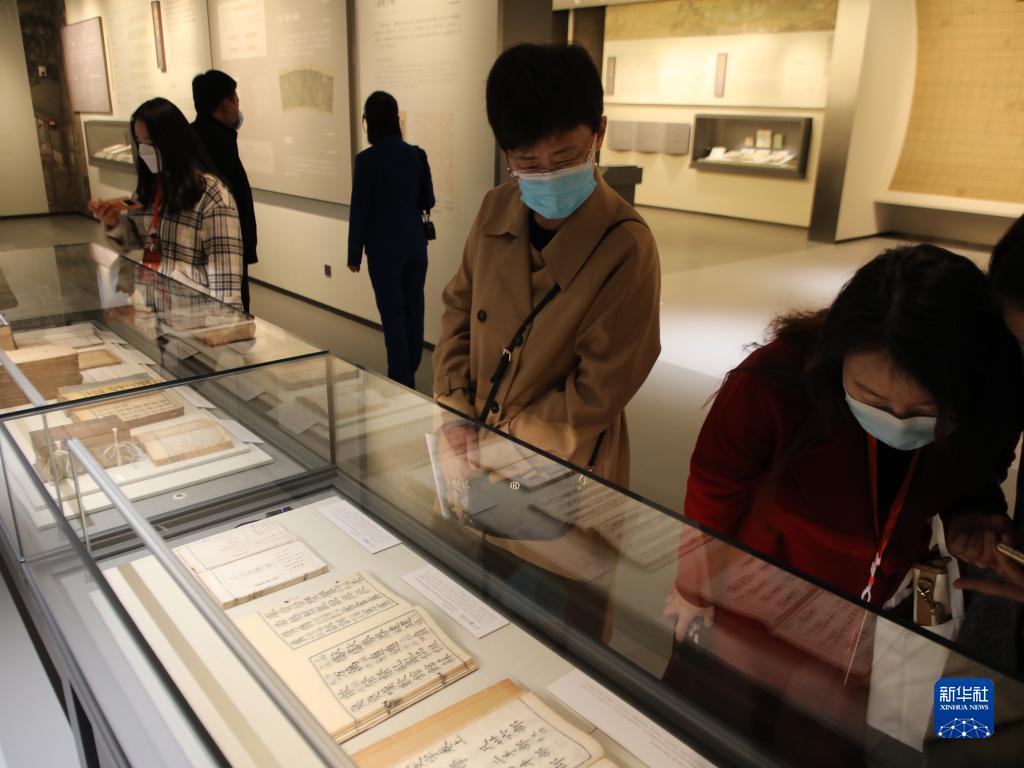11月16日,游客在中国文字博物馆续建工程展馆内参观。