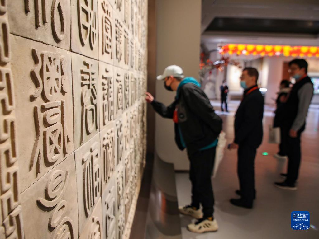 11月16日,游客在中国文字博物馆续建工程展馆内参观。
