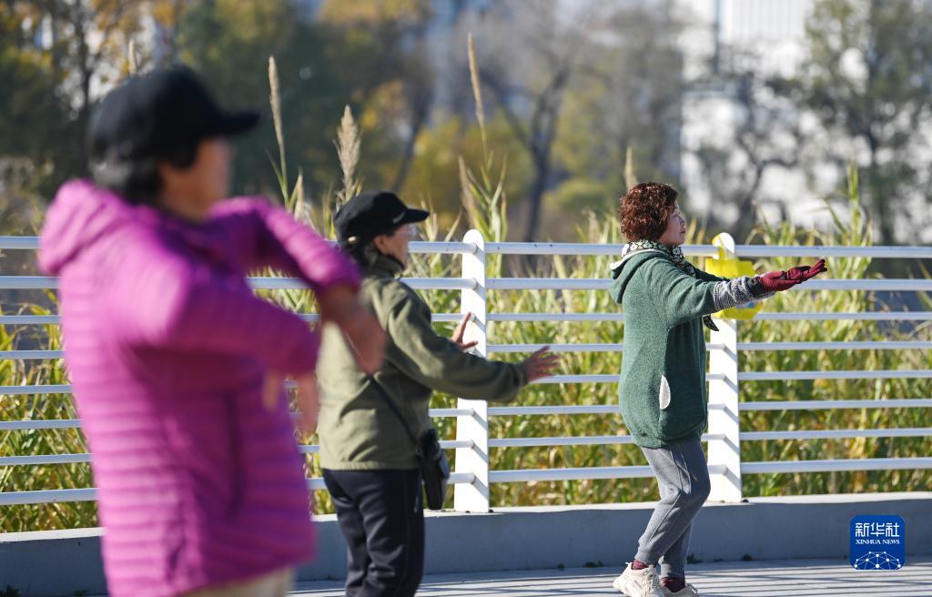 人们在天津市红桥区子牙河滨河公园内跳舞(11月15日摄)。
