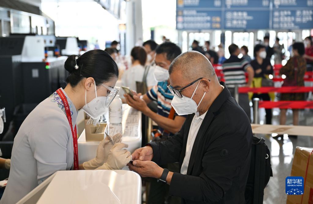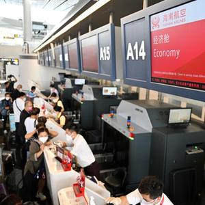 11月16日,准备乘坐海航班机前往香港的旅客在海口美兰国际机场办理登机手续。