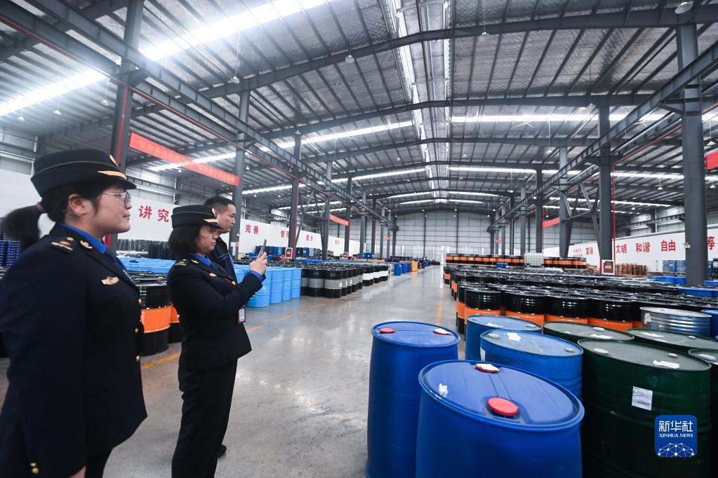 11月17日,在湖州市南浔区南浔镇一家企业内,综合行政执法队工作人员在进行“综合查一次”检查。