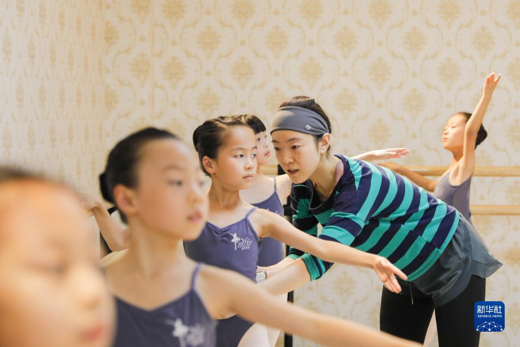 11月4日,在北京的舞蹈教室,赵蕴辉为学生指导动作。 新华社记者 方欣 摄