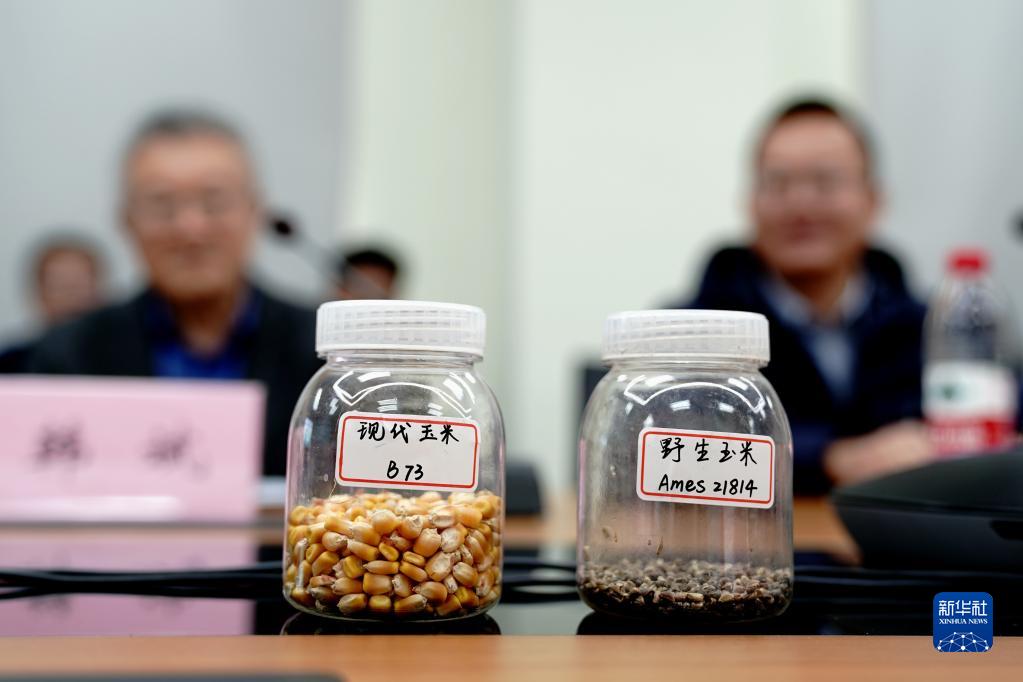 11月16日在中国科学院分子植物科学卓越创新中心拍摄的野生玉米种子和现代玉米种子。