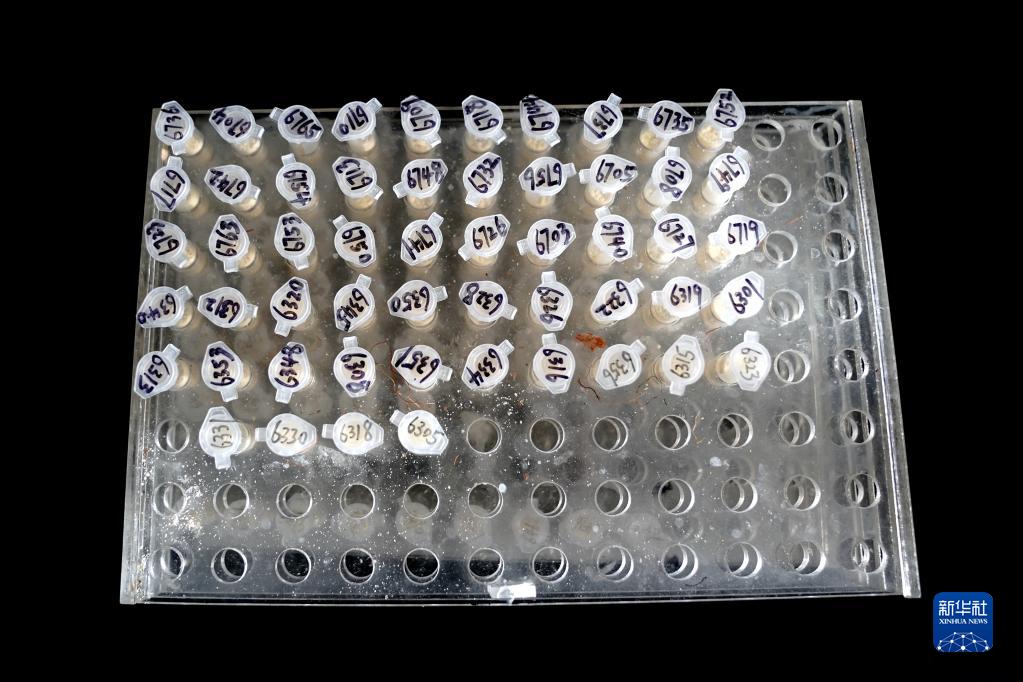 11月16日在中国科学院分子植物科学卓越创新中心实验室拍摄的玉米籽粒粉末样品。