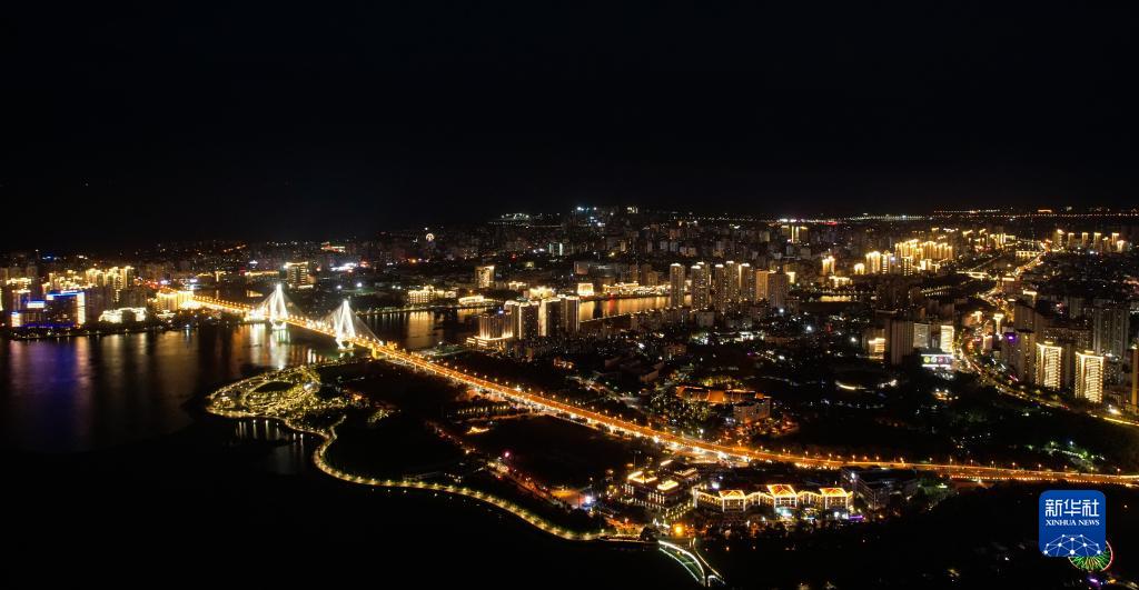 这是夜色下的海口市(无人机照片,2022年8月19日摄)。