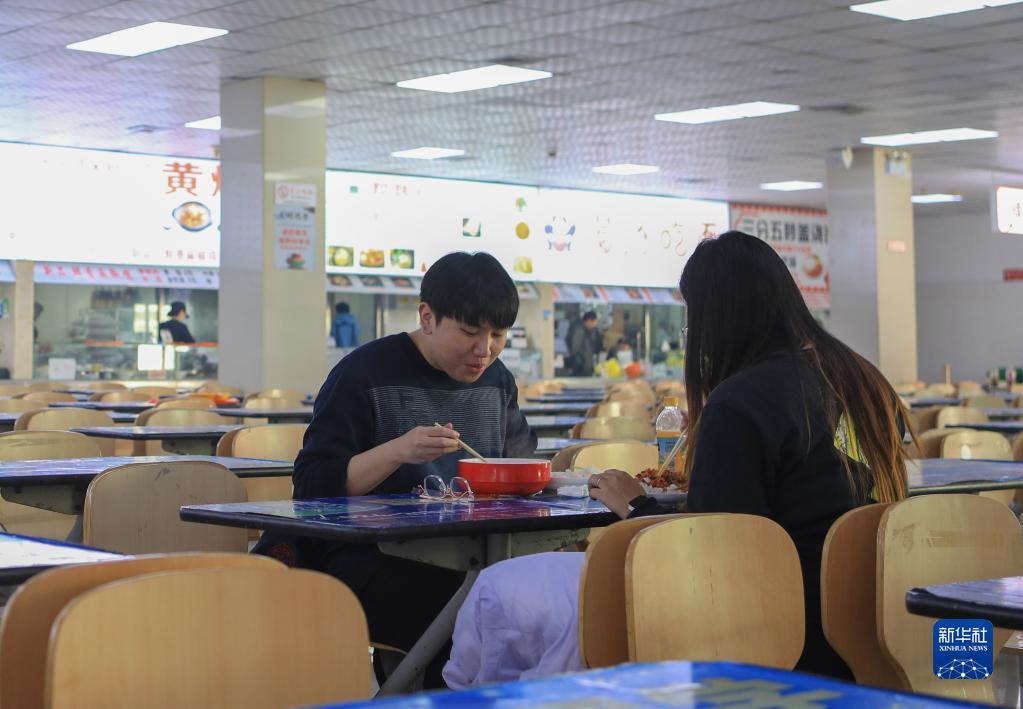 11月16日,李文龙(左)和同学明亮在学校食堂吃午饭。
