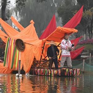 11月18日,和孚镇荻港村村民在水上进行欢庆丰收的民俗表演。