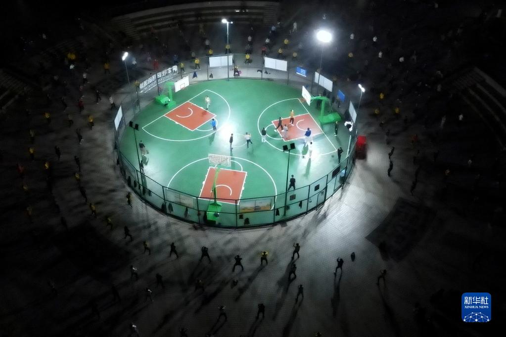 11月15日,市民在铜陵市一处“口袋公园”内健身(无人机照片)。近年来,安徽省铜陵市建设集健身、休闲、赏景等功能为一体的“口袋公园”,拓展城市绿地面积和居民休闲空间。