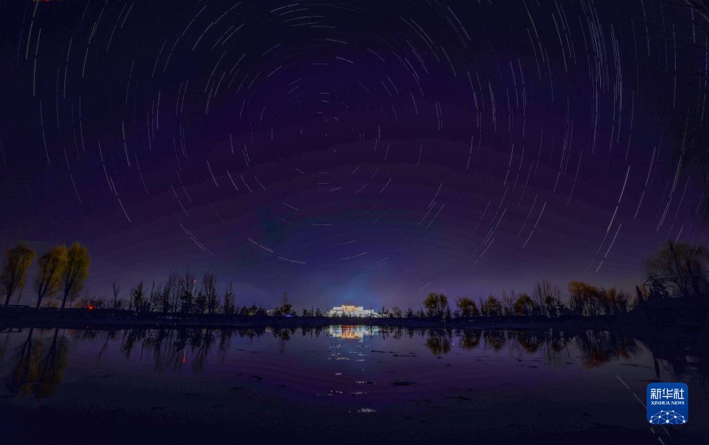 这是在拉萨市南山公园拍摄的以布达拉宫为前景的星轨照片(合成照片,11月15日摄)。