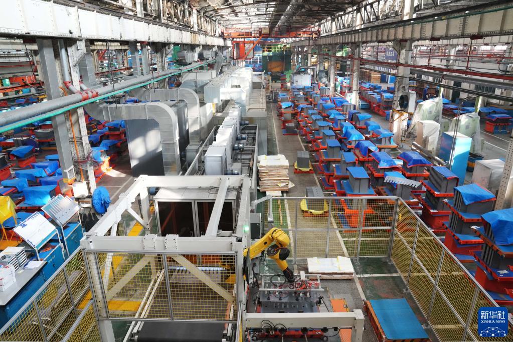这是哈电集团哈尔滨电机厂有限责任公司的数控自动涂漆生产线(11月17日摄)。