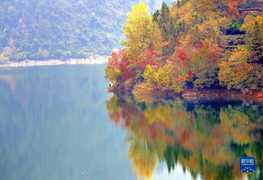 这是11月19日拍摄的湖北省宣恩县珠山镇双龙湖畔景色。