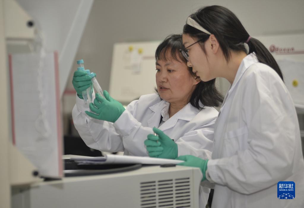 11月17日,罗怀容(左)在西南医科大学药学院实验室指导学生。
