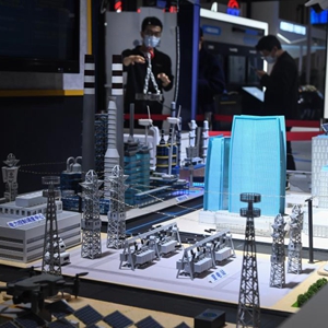 11月20日,参观者在“2022中国5G+工业互联网”成果展展厅参观。