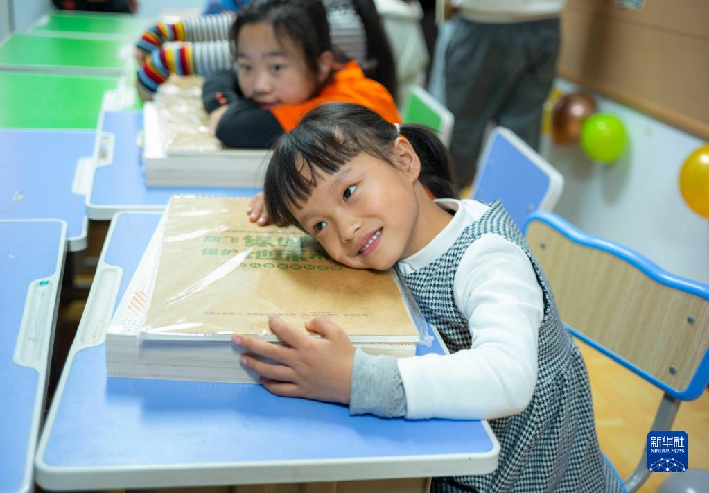 11月20日,在北京市通州区北京妙语语言矫正康复技术中心,一名女孩领到画笔、画本十分开心。