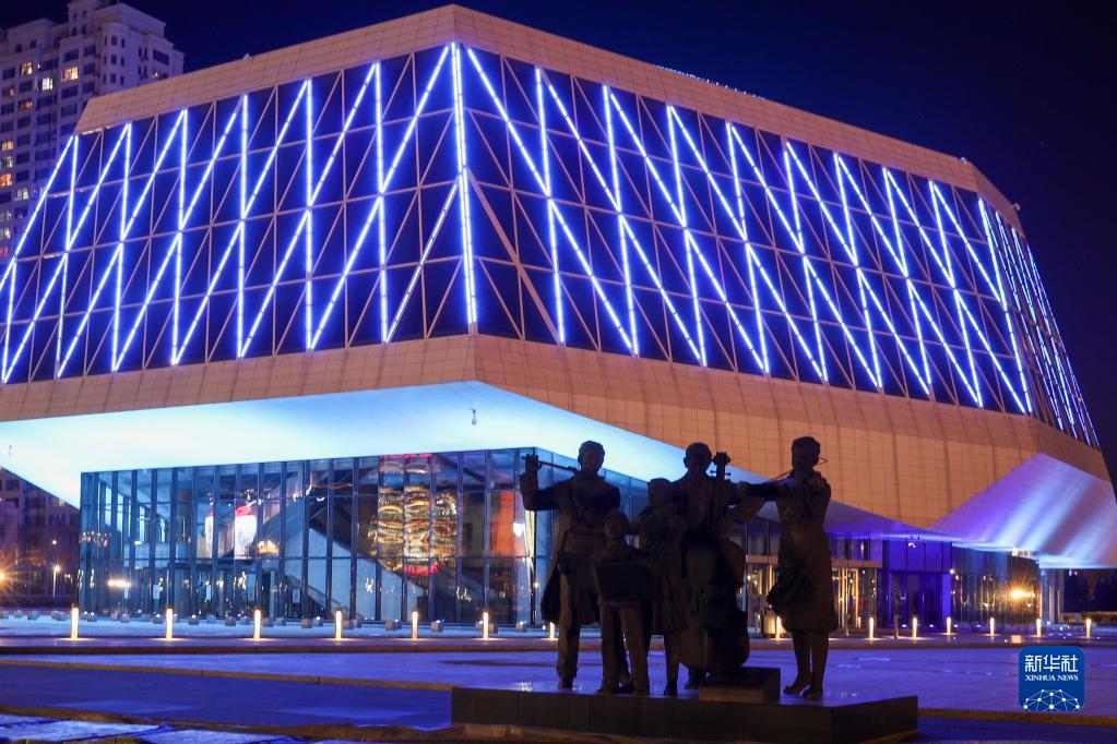 11月20日,哈尔滨音乐厅为世界儿童日亮灯。