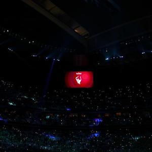11月20日,开幕式现场大屏幕上出现本届世界杯吉祥物。