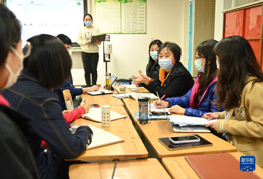 11月18日,在北京第二实验小学,芦咏莉与教师们进行教研交流。