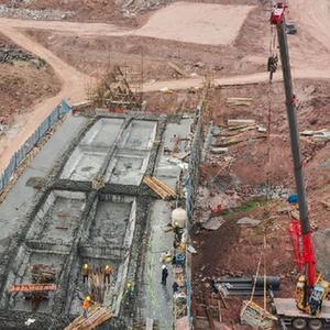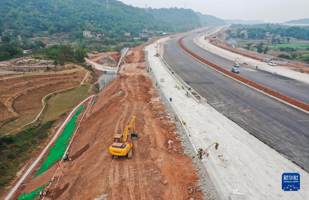 这是11月21日拍摄的重庆科学大道二期工程一标段项目施工作业现场(无人机照片)。