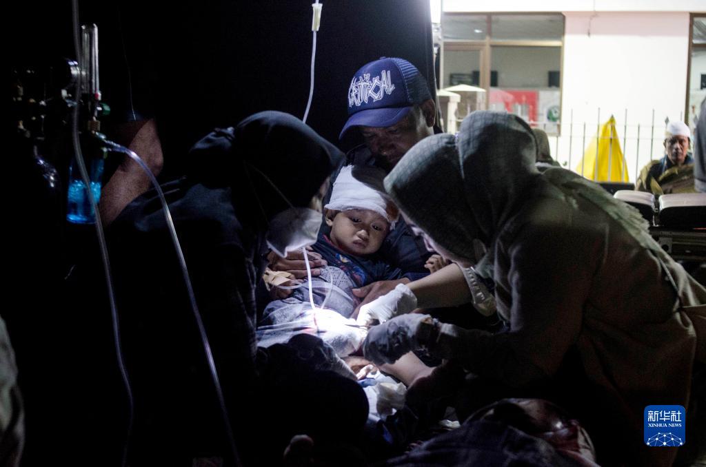 11月21日,医务人员在印度尼西亚西爪哇省展玉救治伤者。