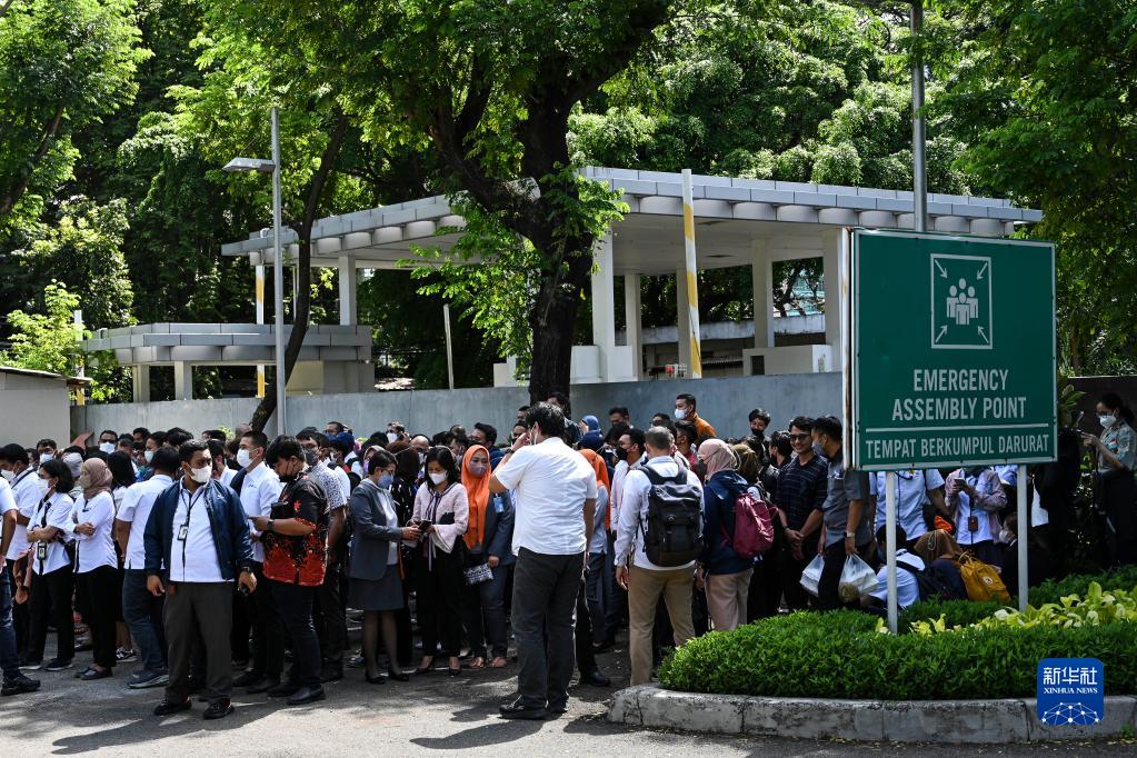 11月21日,在印度尼西亚雅加达,人们在户外开阔地带避险。