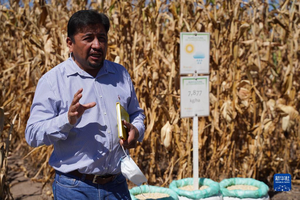 11月7日,一位专家在墨西哥特斯科科郊外国际玉米小麦改良中心的试验田里进行介绍。