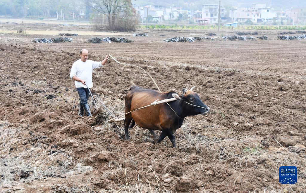 11月22日,湖南省永州市江永县潇浦镇上界头村,农民在翻耕土地。
