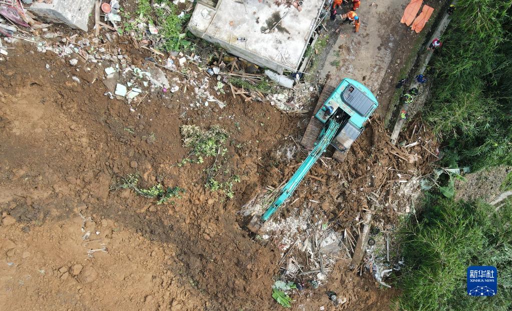 11月22日,救援人员在印度尼西亚西爪哇省展玉地区地震震中附近的山体滑坡现场开展救援(无人机照片)。