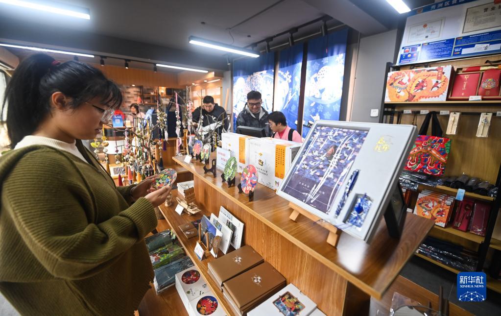 11月22日,游客在胜丰村菱珑湾的文创商店选购特色旅游产品。