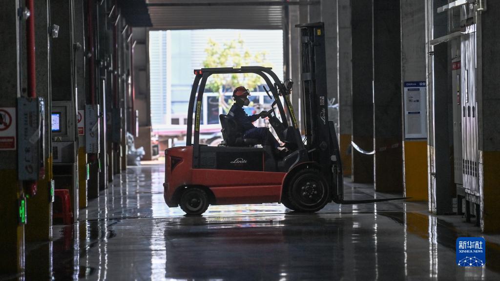 11月21日,在广西中伟新能源科技有限公司生产车间,一名党员突击队员在调运新能源材料。