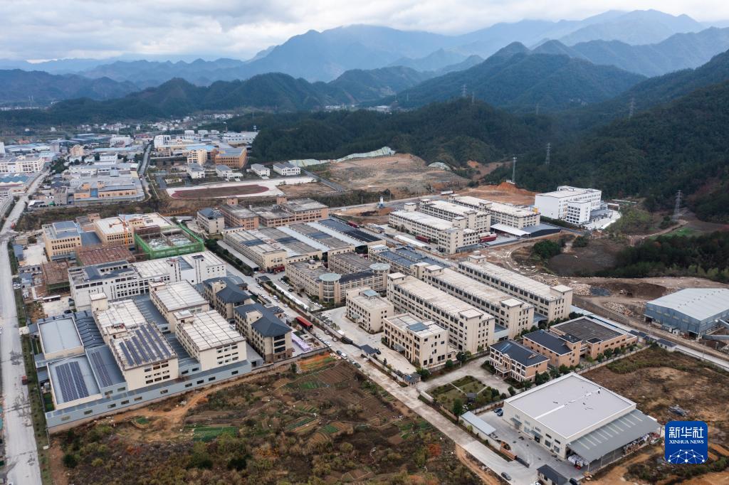 这是11月22日在杭州市临安区龙岗镇拍摄的中国坚果炒货食品城,这是一个集生产加工、销售展示、观光旅游等功能于一体的现代化园区(无人机照片)。